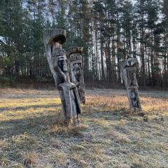 Taip ir buvo atsitikę, kai tuomet žymiausias Lietuvoje medžio drožėjas, didelis šalies patriotas, dabar jau a.a. Ipolitas Užkurnys iš vietinių miškų ąžuolų išdrožė 13 skulptūrų pagal V. Krėvės-Mickevičiaus surinktų ir parašytų Dainavos šalies legendų motyvus.