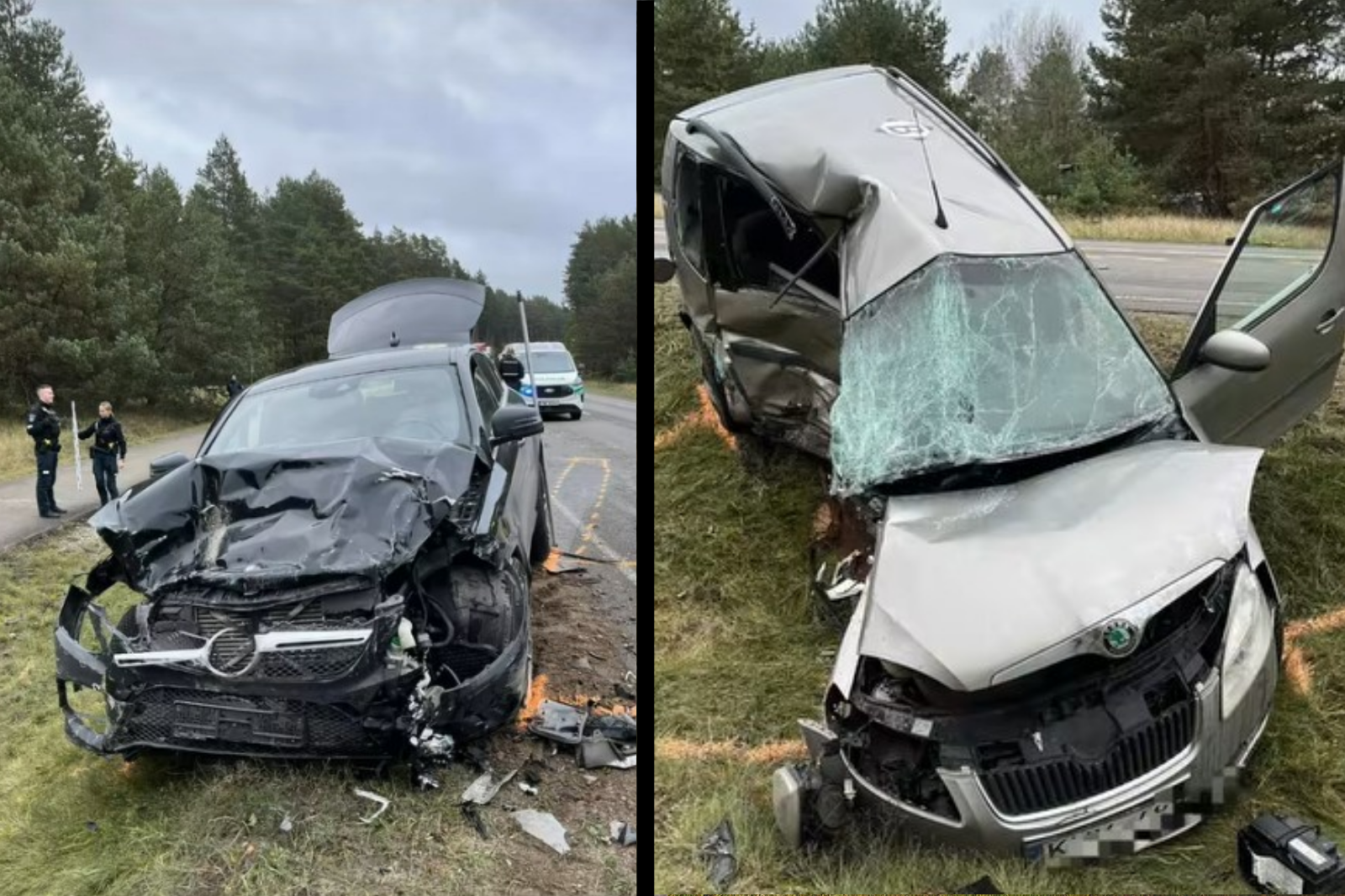 „Škoda“ susidūrė su atvažiuojančiu automobiliu „Mercedes Benz“, kurį vairavo moteris (g. 1972 m.).