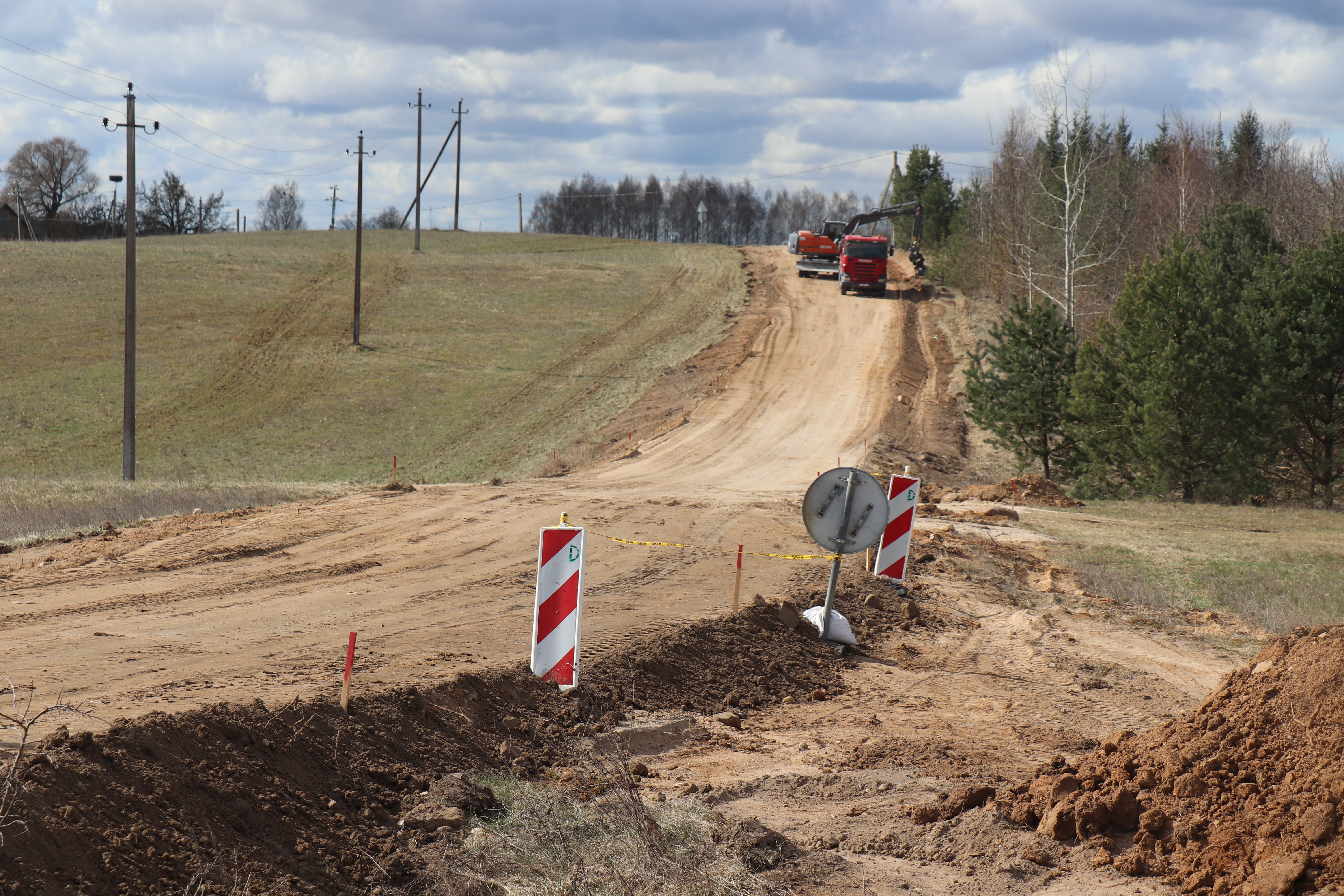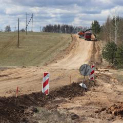 Šiuo metu ruože vykdomi paruošiamieji ir ardymo darbai: žymima kelio ašinė linija, kertami ir smulkinami menkaverčiai krūmai, demontuojami seni kelio ženklų skydai, ruošiama žemės sankasa. Netrukus prasidės kelio dangos įrengimo darbai – žvyruotą kelio ruožą pakeis nauja asfaltbetonio danga su metro pločio kelkraščiais.