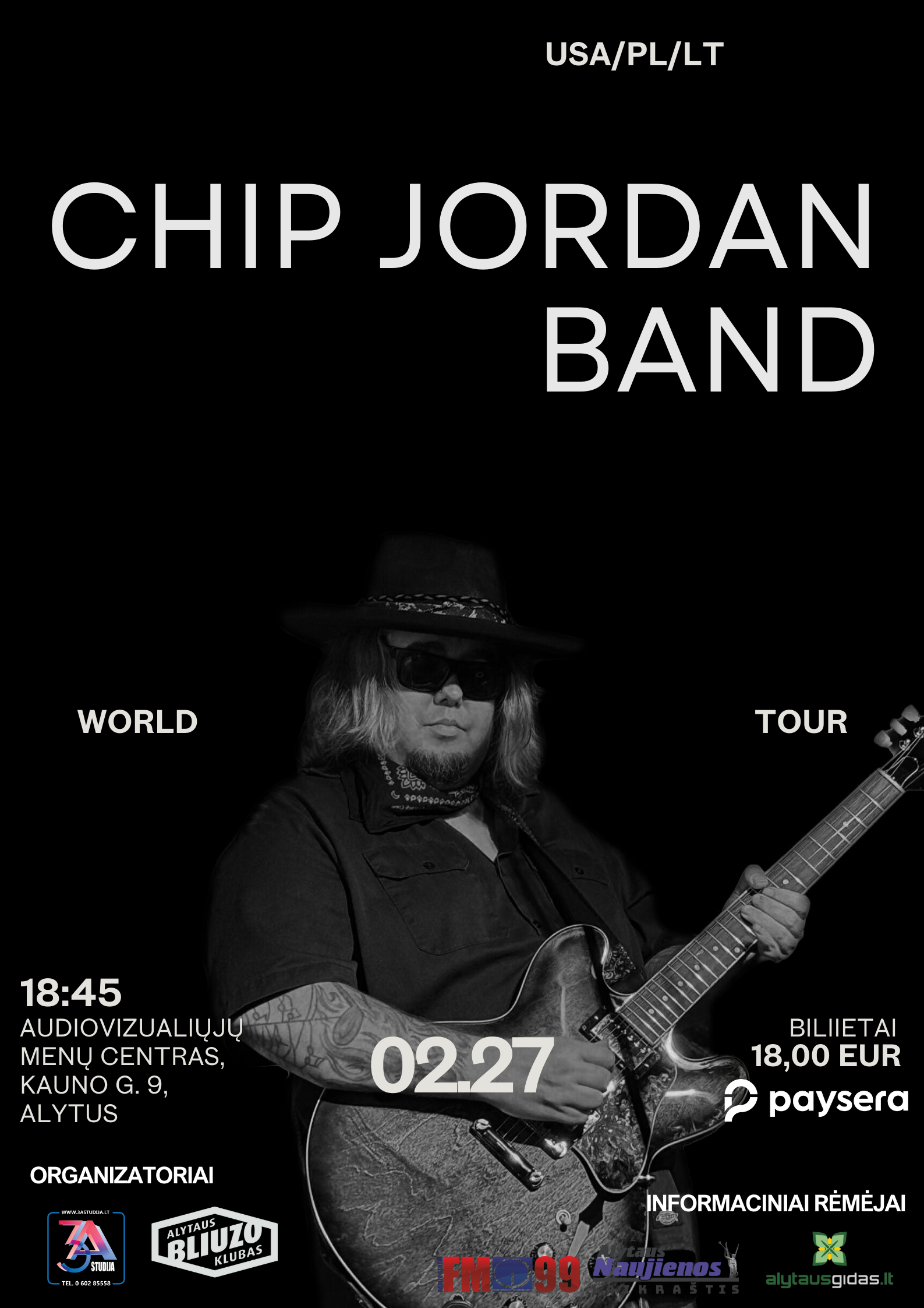 18.45 val. Bliuzo vakarų naujo sezono atidarymo koncertas buv. sinagogoje (AMC, Kauno g.). Svečiuose: vokalistas, gitaristas Chip Jordan (JAV) ir tarptautinė muzikantų grupė (Lietuva-Lenkija). Su bilietais.