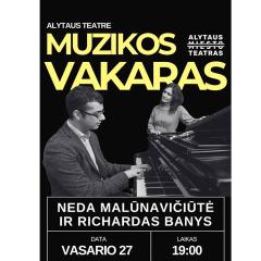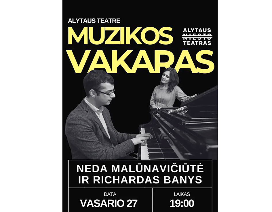 19 val. Vokalistės Nedos Malūnavičiūtės ir pianisto Richardo Banio koncertas AMT galerijoje (Rotušės a.). Su bilietais.