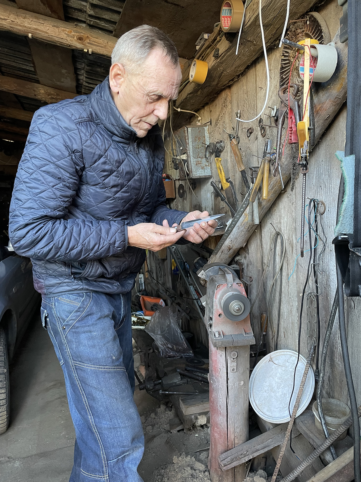 „Jūs tik per daug neprirašykit, dar kai kas supras, kad aš kažkoks verslininkas. Daug kas kaime moka ir trimerį susiremontuoti, ir peilius pasigaląsti, aš gal daugiau kitiems padedu tokius darbus pasidaryti. Ir tik tada, kai turiu laiko“, – sako Algis.