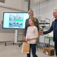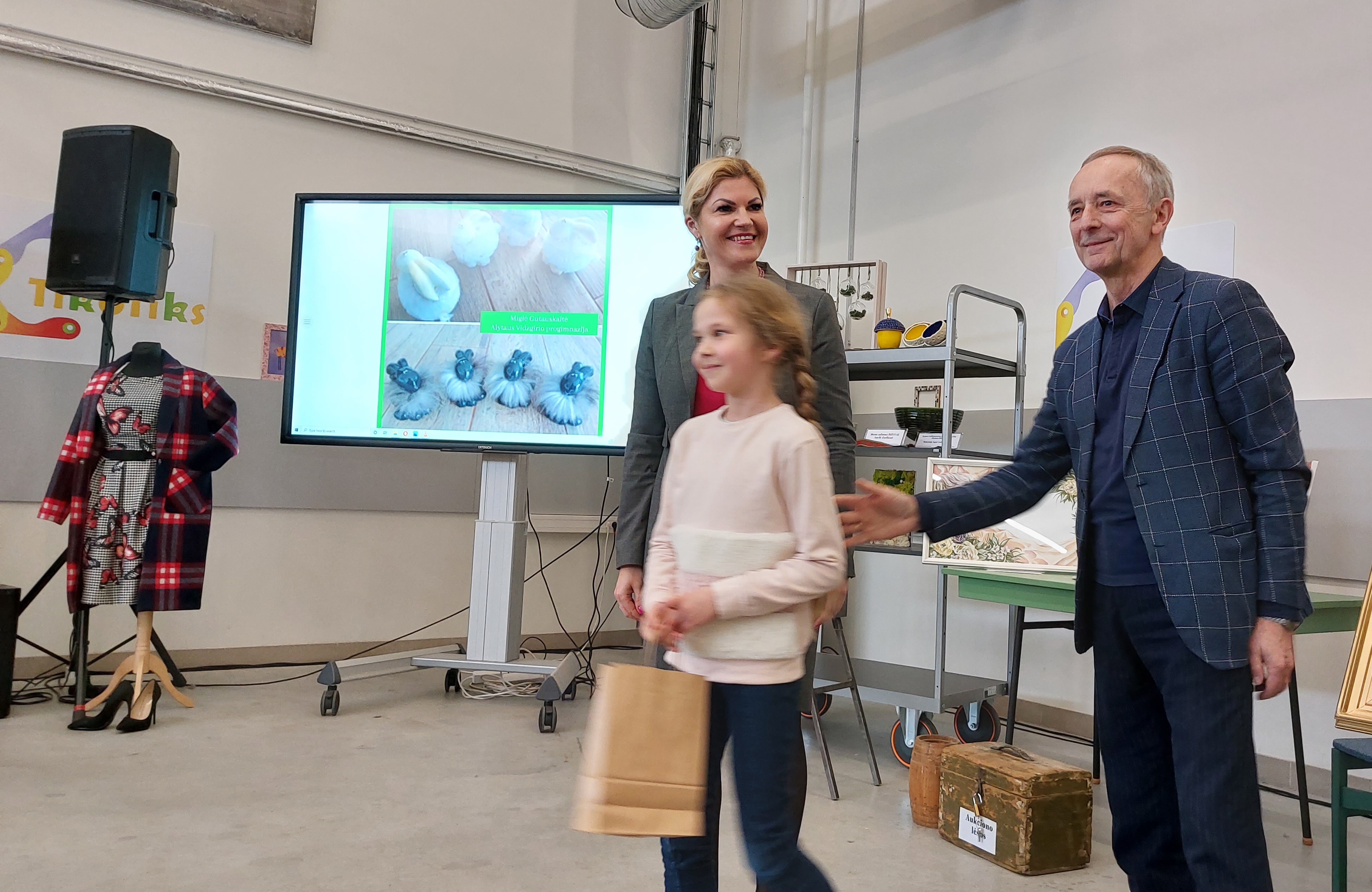 Publikos numylėtine tapo aštuonmetė Alytaus Vidzgirio progimnazijos moksleivė Miglė Gutauskaitė, atnaujinusi senus keramikinius zuikučius. „Zuikučiai buvo labai apsitrynę, vietomis nučiupinėti mažų pirštelių, kailiukas nešvarus bei luposi. Kadangi Miglė labai myli gamtą, eidama gatve vis pakelia numestą šiukšlę ir neša išmesti, ji puikiai supranta, kad išmetami daiktai niekur nepradings. Tad gamtos saugojimo, taupumo bei tai, kad zuikučiai yra labai mieli, sumetimais, pasirinkus prie interjero derančią spalvą Miglė nudažė zuikučius, nuo savo senos striukės panaudojo kailiuką, kurį labai kruopščiai šukavo bei bendromis jėgomis piešiame akytes“, - rašoma Miglės darbų pristatymą.
