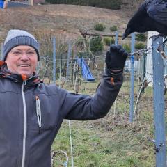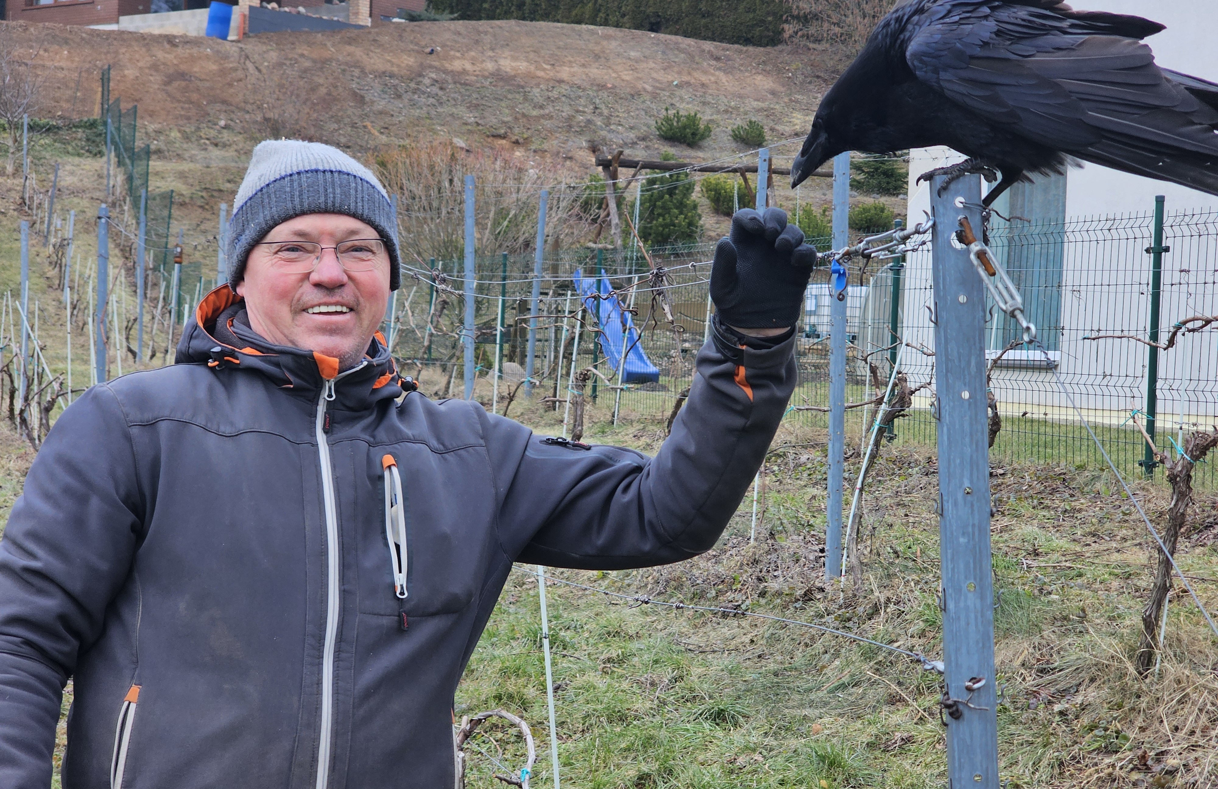Edvinas dar neapsiplunksnavusį krankliuką Huginą prieš metus rado miške, netoli Verebiejų, iškritusį iš lizdo, o šiandien jie neišskiriami draugai. Ta draugystė panaši į verslininko bičiulystę su vynuogėmis, kurias jis augina jau 26 metus.