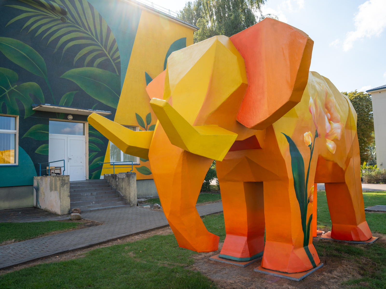 Prie dramblio kelionės prisidėjo ir gausus būrys rėmėjų – jie padėjo jį atgabenti, restauruoti ir pastatyti gimnazijos teritorijoje. Netrūko ir simboliškų sutapimų. Tuo metu sienų tapytojas Pijus Šematulskis mokykloje kūrė piešinį nusiraminimo kambariui. Pamatęs dramblį, jis pasiūlė sukurti jam „namus“ – taip gimė džiunglių motyvais dekoruota už dramblio esanti siena. „Juokingiausia, kad baigęs darbą jis pažvelgė į mokyklą ir pasakė: „Įsivaizduoji, kaip būtų smagu išdažyti visą pastatą?“ – šypsosi Klementina.